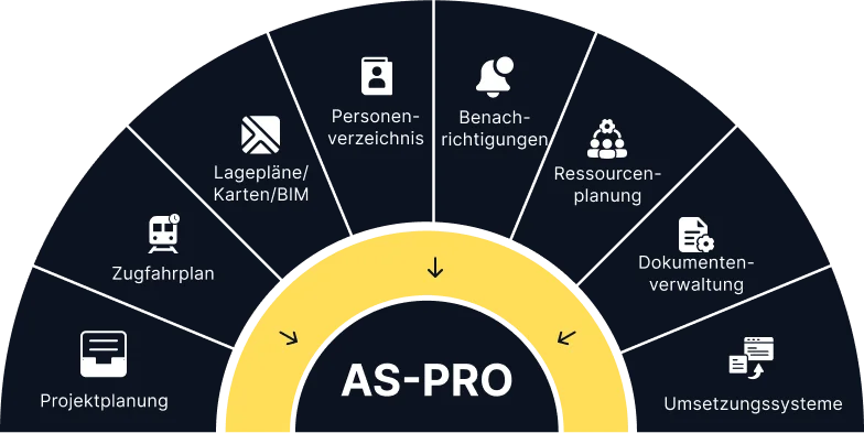 AS-PRO steht Ihnen bei Ihrem Planungsprozess zur Seite und folgt den Richtlinien von R RTE 20100 und R RTE 20600. Unsere Software verfügt über eine Vielzahl von Funktionen, die Ihnen dabei helfen, Ihre Arbeitsbereiche zu visualisieren, Sicherheitsrisiken zu erkennen und die richtigen Sicherheitsmassnahmen für Arbeiten in der Nähe von Bahngleisen auszuwählen. Sie sorgt für die Sicherheit Ihres Arbeitsbereichs und unterstützt Sie dabei, Ihre Planung effizient zu gestalten.